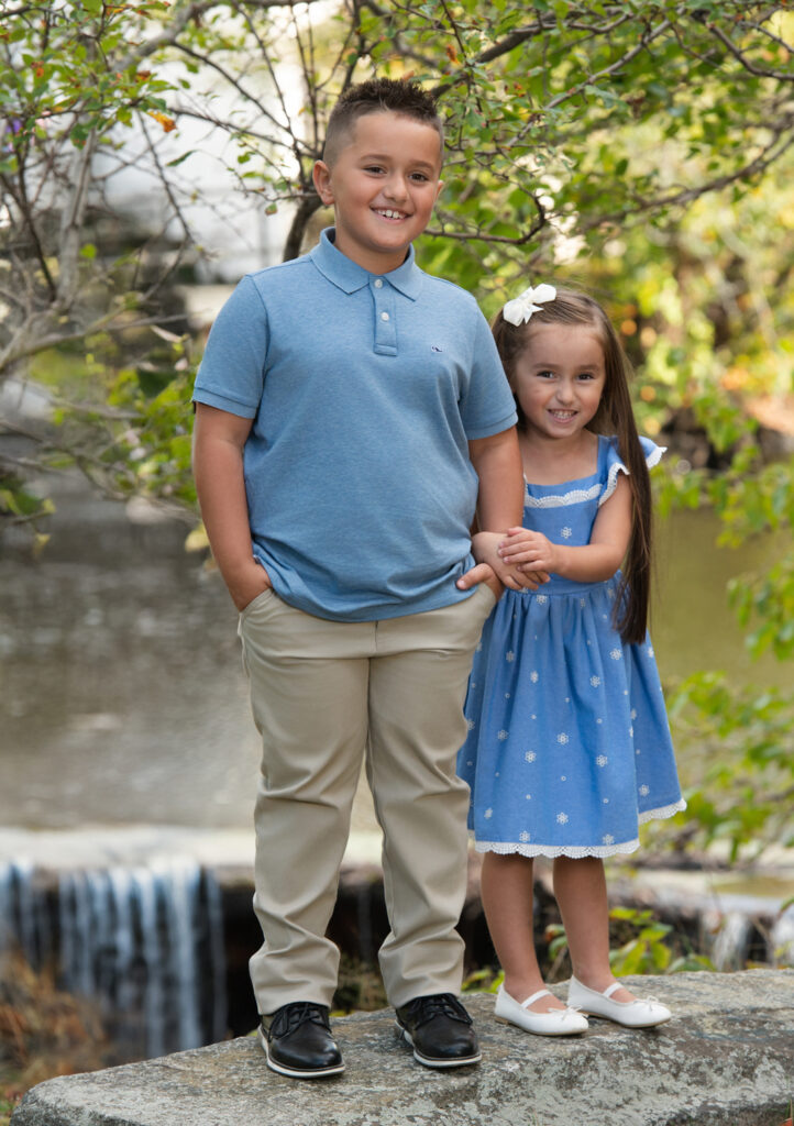 After our studio time, we moved outdoors to a nearby waterfall, taking advantage of the beautiful fall scenery. The outdoor portraits added warmth, movement, and candid moments that perfectly complemented the studio images.