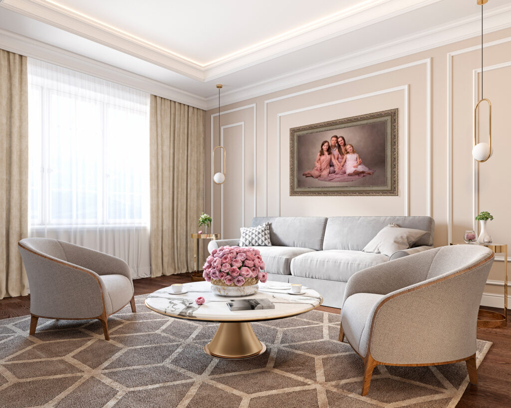 This portrait above was my Mother’s Day gift in 2020 during the pandemic lockdown. There was not much we could do, so when my family asked me what I would want for a Mother’s Day, I replied ‘ A FAMILY PORTRAIT. We all went to my studio, I did my girls’ hair and age-appropriate make-up, we chose outfits from my studio wardrobe, and ended up having a beautiful day creating this special portrait. It was a truly special day and now I have this portrait hanging at my home and also at the studio.